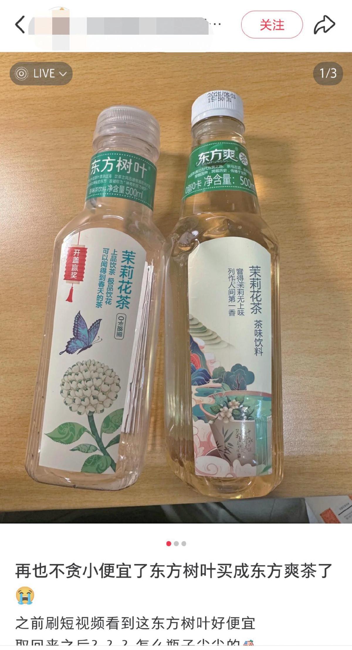 “其时我感觉购物节快到了,东方树叶出格廉价,正好日常平凡也爱喝,买一箱囤着。今天快递到了,拆开辟现包拆很奇异,瓶子的比例不太协调,细心一看才发觉是东方爽茶。下次买工具必然要看清晰。”。
